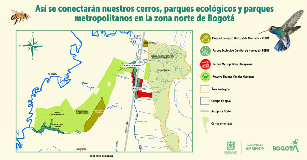 Por otro lado, lo que se pretende con el Parque Metropolitano del nororiente de la ciudad es tener una gran área pública con enfoque de sostenibilidad, que genere valores paisajísticos y ambientales. Este espacio no tendrá interferencia con las áreas protegidas (como los humedales y la reserva), pero servirá para la conectividad ecológica.